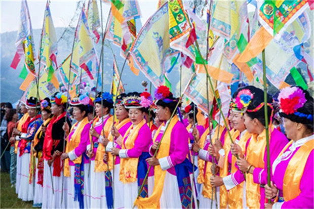傳統(tǒng)服飾,踏上了前往格姆女神山麓的旅程。