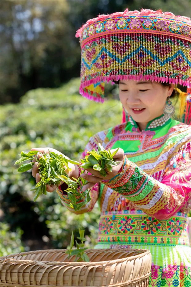 簍,手指如蝶般輕巧地掠過(guò)茶樹(shù),只輕輕一掐,最嫩的春色就被收入簍中。遠(yuǎn)處傳來(lái)悠揚(yáng)的采茶調(diào):“三月鷓鴣滿山游,