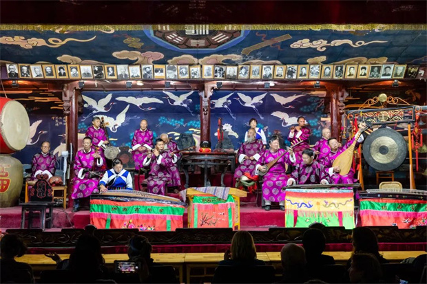 夜幕降臨,燈籠如同散落在硯臺中的朱砂,次第亮起,為古城披上了一層神秘的面紗。從某座四合院中飄出的洞經(jīng)音樂