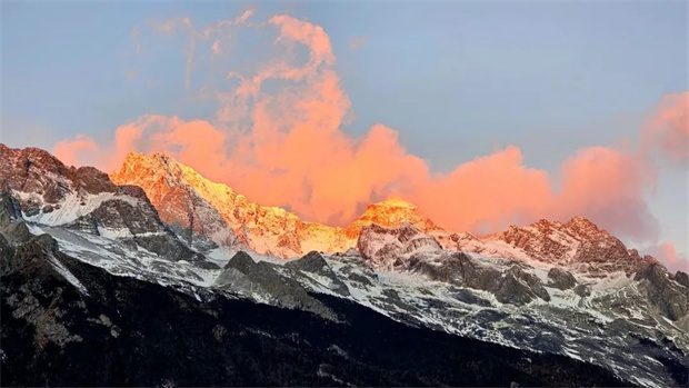 ,周圍的世界亮了起來,可時間仿佛靜止了,你將這份雪山和日出繪成的記憶,留在快門下,也留在了心中。