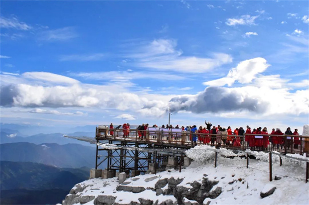 乘索道抵達4506米觀景臺,已經(jīng)能夠感受到雪山的磅礴之氣,氧氣在雪山懷抱中化作白霧,想要沿著棧道攀登挑戰(zhàn)468