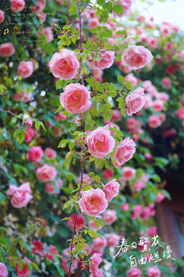 若你問:“何時宜訪麗江?”答案可以是:“四月薔薇滿城時?!币驗槟且豢蹋懦嵌荚诘驼Z——“我以花開為信,邀君