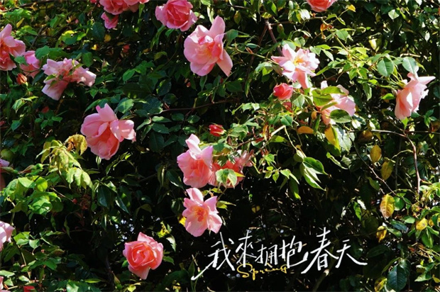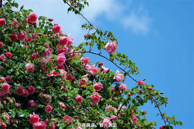 春陽傾瀉時,薔薇更顯璀璨。陽光穿透層層疊疊的花瓣,在石板路上灑下細碎的光斑,恍若星辰墜入人間。游人驚嘆: