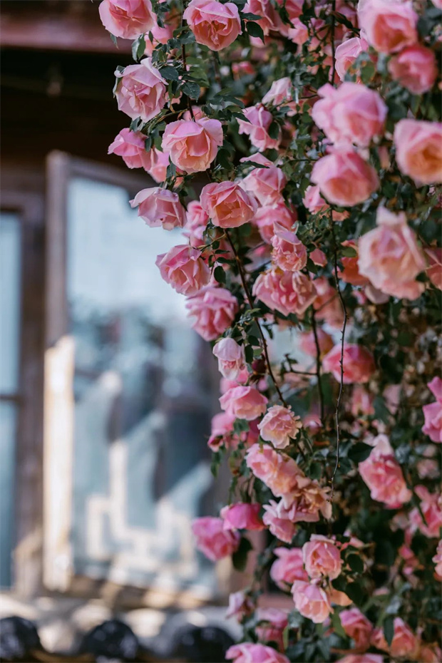 人家的窗欞。那些柔韌的藤蔓,像極了繡娘手中的絲線,將八百年的古城細(xì)細(xì)縫制成一件粉色的霓裳。曾有位英國園藝