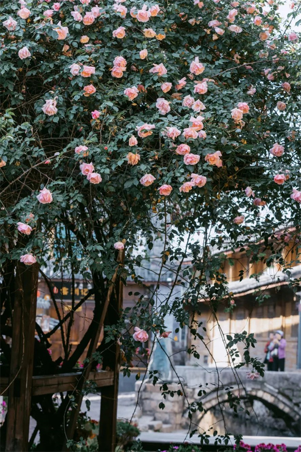 每當(dāng)花開時(shí)節(jié),“麗江之路”便會(huì)以一種近乎囂張的方式展現(xiàn)自己的美麗——它可以爬高十幾米,覆蓋整面墻壁或爬滿整