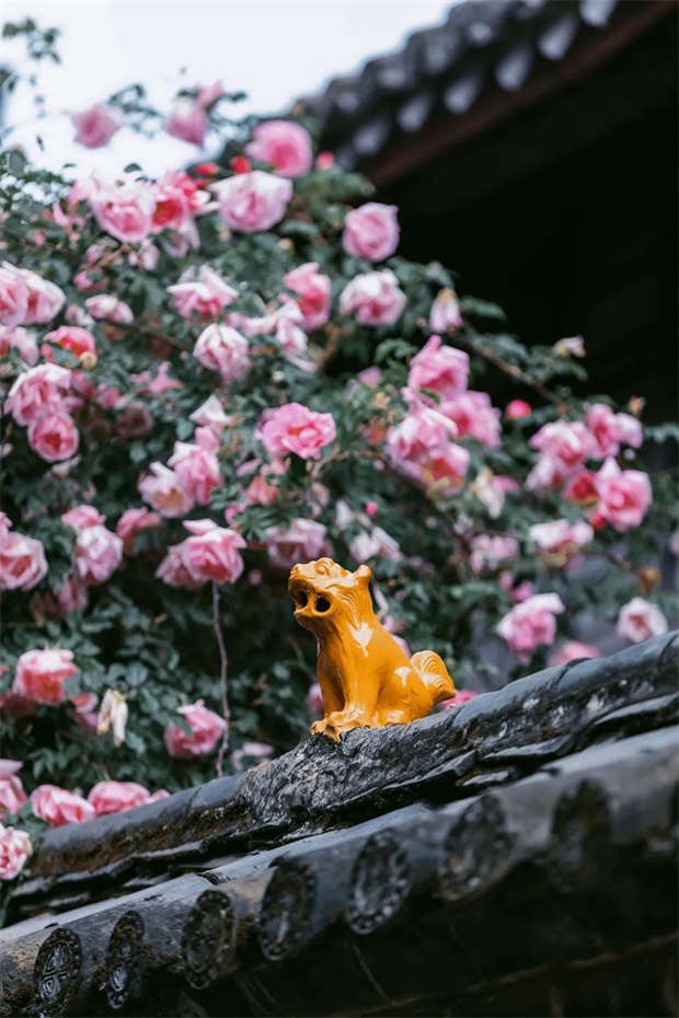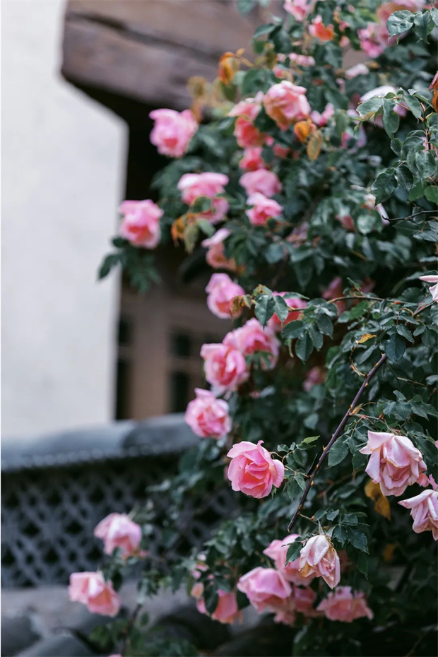 最令人稱奇的是它野蠻生長的姿態(tài)。在江南需精心呵護(hù)的月季,到了麗江竟顯露出驚人的生命力——一藤便能成景,孤