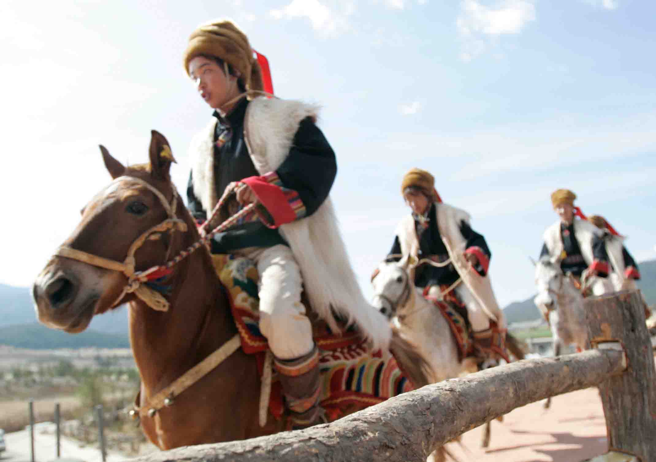 麗江古城成為滇西茶馬古道上的重鎮(zhèn),都是因為馬幫的原因。顧彼得在他的《被遺忘的王國》中,把馬幫當作可以和原子彈抗衡的"人類武器",可見麗江的馬幫是多么讓世人震驚。馬幫影響著納西人的生活,他們以能參加馬幫,當上馬鍋頭為榮。馬鞍舞展現(xiàn)了大馬幫男人的英雄色彩。