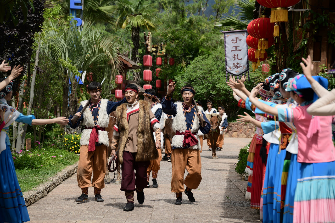景區(qū)內大型歌舞《麗江千古情》、大型實景演出《麗江戀歌》、實景體驗劇《大地震》以及《木府招婿》《鍋莊狂歡》等演藝秀輪番上演,精彩紛呈。