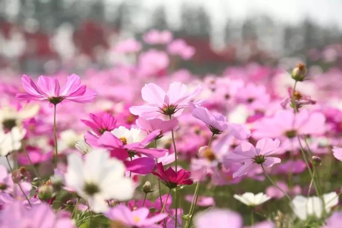 粉紅色的花海環(huán)湖而開,湖水清澈,花朵嬌美,不由得讓人感嘆歲月靜好。