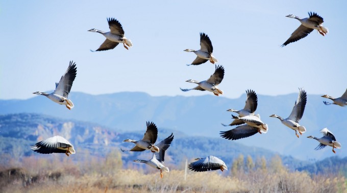 據(jù)調(diào)查,在拉市海濕地共有鳥類57種,每年來此越冬的鳥類有3萬只左右,其中特有珍稀瀕危鳥類9種,包括青藏高原特有鳥類斑頭雁,國家一級保護(hù)鳥類中華秋沙鴨、黑頸鶴、黑鶴等。因而,省政府于1998年6月正式批準(zhǔn)建立云南麗江拉市海高原濕地自然保護(hù)區(qū),包括拉市海、文海、吉子水庫、文筆水庫等4個片區(qū),總面積6523公頃,其主體部分拉市海片區(qū),面積5330公頃,成為候鳥的棲息樂園。