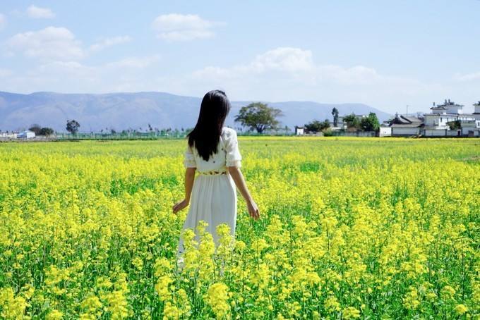 3、4月份,油菜花盛開,此時走進(jìn)拉市海,滿眼都是金色花海,一眼望去,是山水風(fēng)光,田園美景。