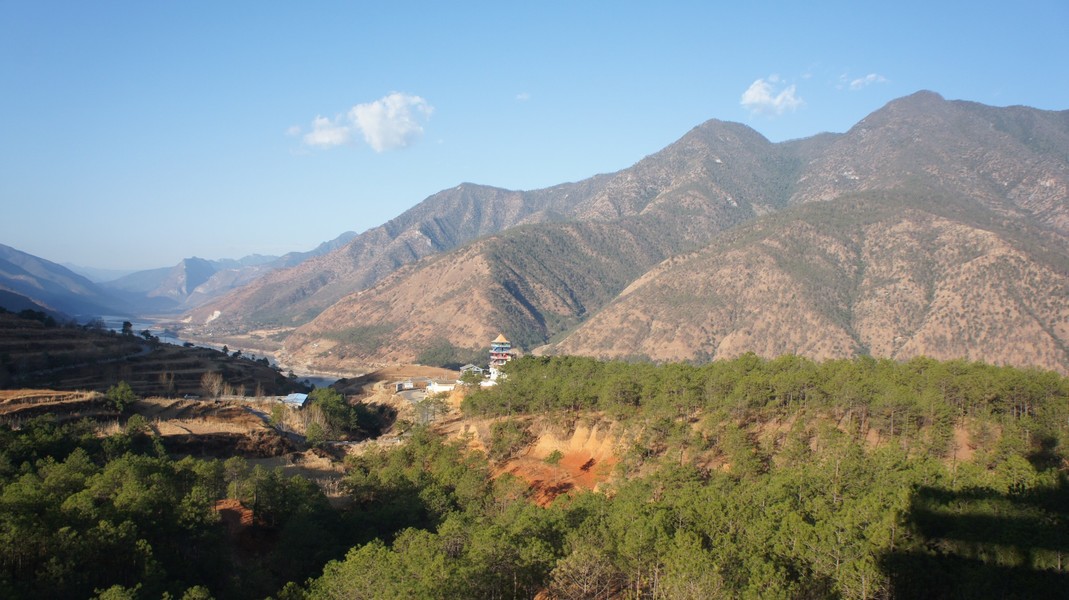 第二段:到達(dá)tinas后,如果感覺自己沒問題還可以就可以去中虎跳,從tinas過橋后從天梯客棧下到中虎跳谷底,該段路是當(dāng)?shù)乩习傩兆约盒薜穆芬虼诵枰o10元過路錢,這段路我挑戰(zhàn)了,個(gè)人感覺是跟28道彎差不多,先從公路下到谷底30-40分鐘左右,比較輕松,但是要從谷底上到公路(因?yàn)橐豻inas坐車)就十分痛苦了,我上來以后對自己說“老子以后再也不來了,太累了”,這段路程自己感覺,時(shí)間充??梢蕴魬?zhàn),提示:會(huì)很累