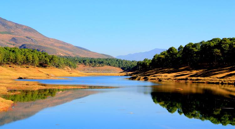 在云南省大理白族自治州北部靠近麗江的地方,有一塊狹長(zhǎng)形的大壩子,叫做鶴慶壩子。壩子西側(cè)的高山腳下,矗立著的就是與壩子同名的縣城——鶴慶縣城。鶴慶壩子里分布著大大小小的龍?zhí)叮噙_(dá)上百來(lái)個(gè),所以被稱為“龍?zhí)吨l(xiāng)”。尤其以大龍?zhí)?、西龍?zhí)丁ⅫS龍?zhí)哆@三個(gè)為佳,我們此次徒步的路線也就是三大龍?zhí)吨淮簖執(zhí)?。大龍?zhí)?,位于鶴慶縣東北部的辛屯鎮(zhèn)逢密村,緊鄰麗江三義機(jī)場(chǎng),大龍?zhí)妒且粋€(gè)“西南--東北”走向的狹長(zhǎng)形水庫(kù),除了西南端的大壩之外,其余三面都處在青松環(huán)抱之中,生態(tài)環(huán)境及其良好,也少有人來(lái)打擾。