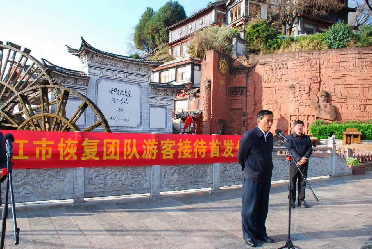 疫后麗江市恢復(fù)團(tuán)隊游客接待首發(fā)儀式在麗江古城大水車舉行-麗江旅游再出發(fā)