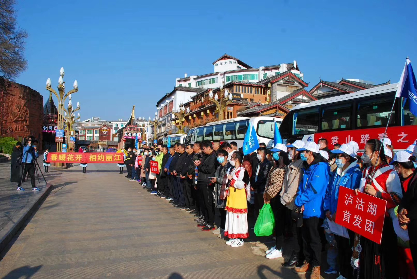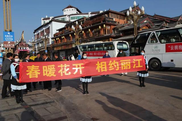 春光明媚,暖風(fēng)融融,當(dāng)下正值麗江旅游好時節(jié)。3月22日上午9點,在云南旅行社恢復(fù)“省內(nèi)游”后,麗江迎來首批旅行團(tuán)。麗江市委常委、常務(wù)副市長木崇根,麗江市文化和旅游局局長張建華,麗江古城管理局常務(wù)副局長和麗軍,玉龍雪山管委會主任楊俊星,瀘沽湖管理局局長和振,老君山管理局局長和平生,玉龍旅游股份有限公司總經(jīng)理劉曉華,麗江市旅游協(xié)會會長王化新等領(lǐng)導(dǎo)到場迎接。