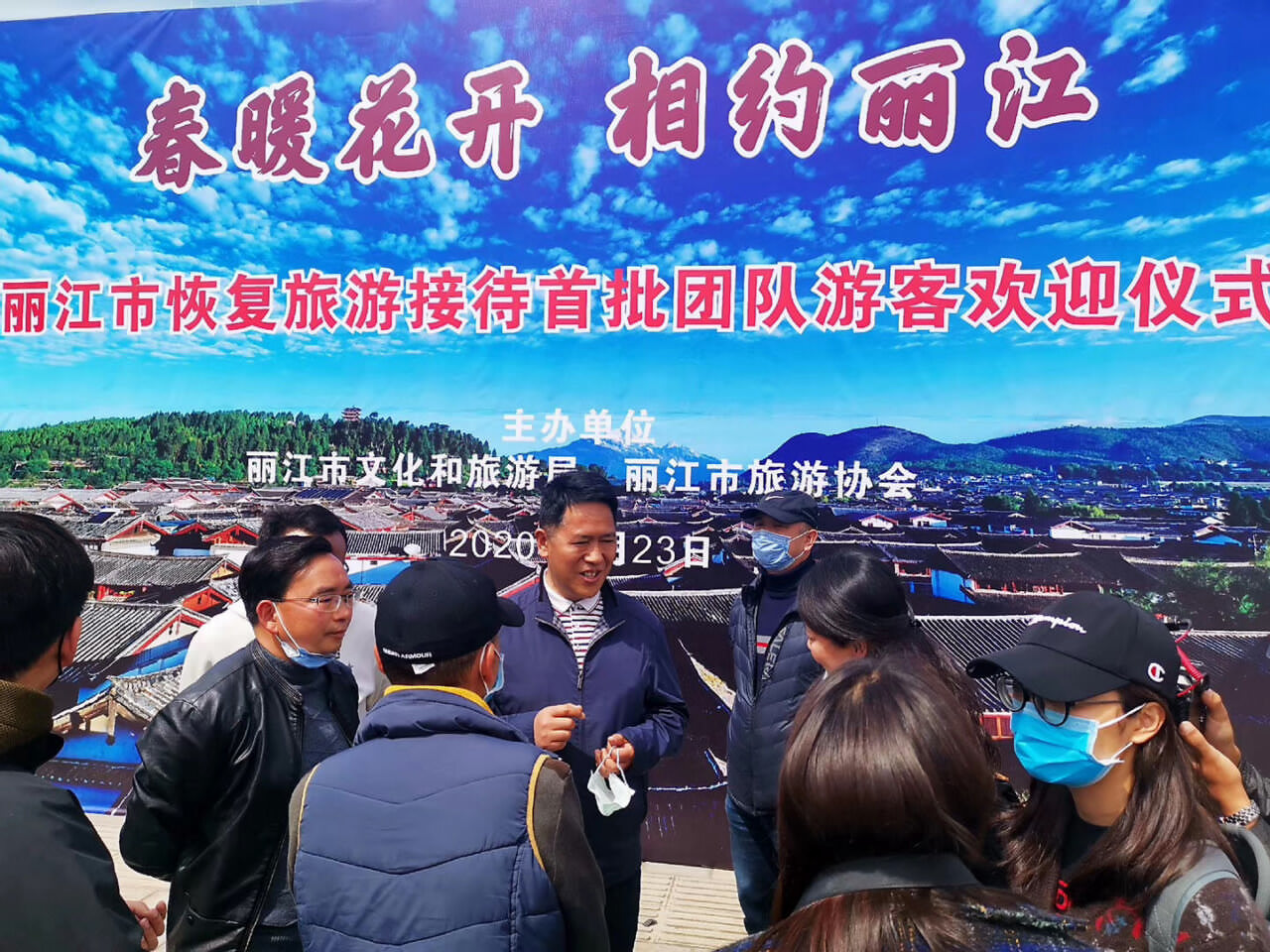 在暫停經(jīng)營旅游團隊業(yè)務(wù)60天后,3月23日,云南麗江迎來首批旅行團。麗江旅行社協(xié)會和麗江市文化和旅游局在麗江三義機場舉行歡迎儀式!
