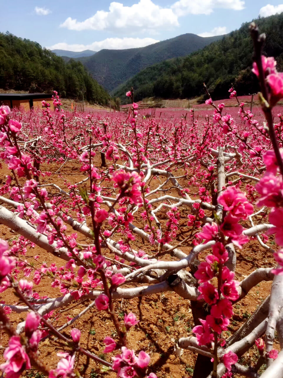 因?yàn)榈匦蔚孛蔡厥?,群山環(huán)繞,這里形成的峽谷地貌,聚住了太陽(yáng)的精華,氣溫相比周圍,要高出幾度,也因此造就這里的桃兒,比其他地方的桃甜度提升了不少,“不僅甜度高,也比外界其他地方的桃晚熟,自然很受歡迎?!碑?dāng)?shù)剞r(nóng)人這樣介紹著他們的經(jīng)濟(jì)來源——麗江雪桃。