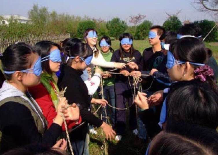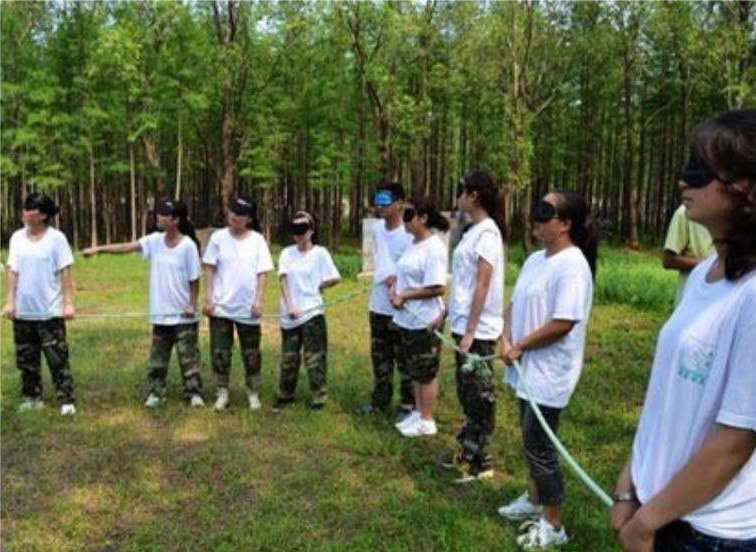盲人方陣,也叫黑夜協(xié)作,這是一個以團隊挑戰(zhàn)為主的項目。用教練給的繩索圍成一個面積最大的正方形,看似簡單吧。但是當所有的人被蒙上眼睛的時候,隊員會發(fā)現(xiàn),原來難度一點也不小,并且大家將體會到團隊的指揮、溝通、協(xié)調(diào)能力還真不能被忽視。一群盲人在黑暗中摸索,他們必須集體完成一個十分精細的任務(wù)。在茫然無助的探索中,管理中的現(xiàn)象在此都表露無遺,很值得學(xué)員去體味和思考。