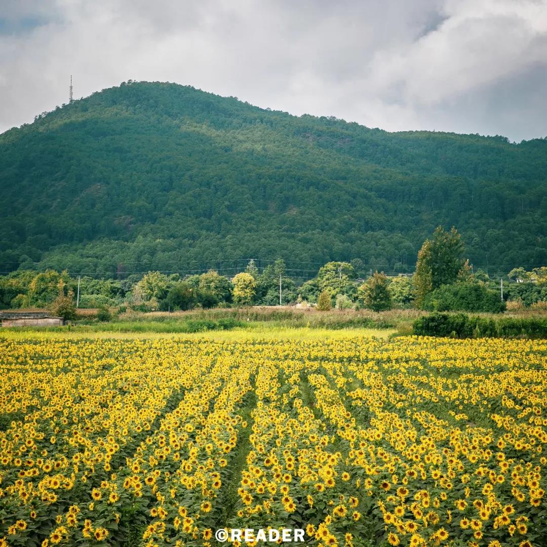 大片的金黃,一下子就牢牢抓住了你的目光,這時,你只會遵循身體的本能,下車,奔向這片向日葵的海洋。