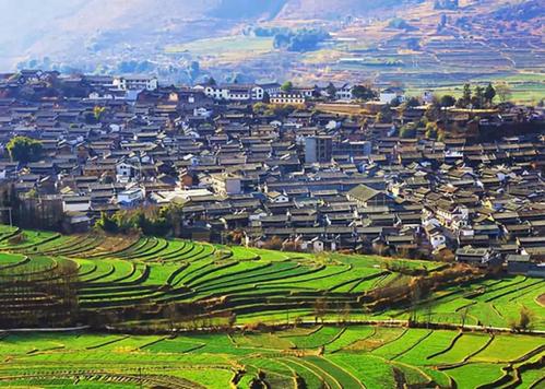 作為“魚(yú)米之鄉(xiāng)”,春季的永勝一派怡然的田園風(fēng)貌。山林之間,梯田成片,瓦房周?chē)煌舯毯?,完全就是理想中世外桃源的既視感?br />