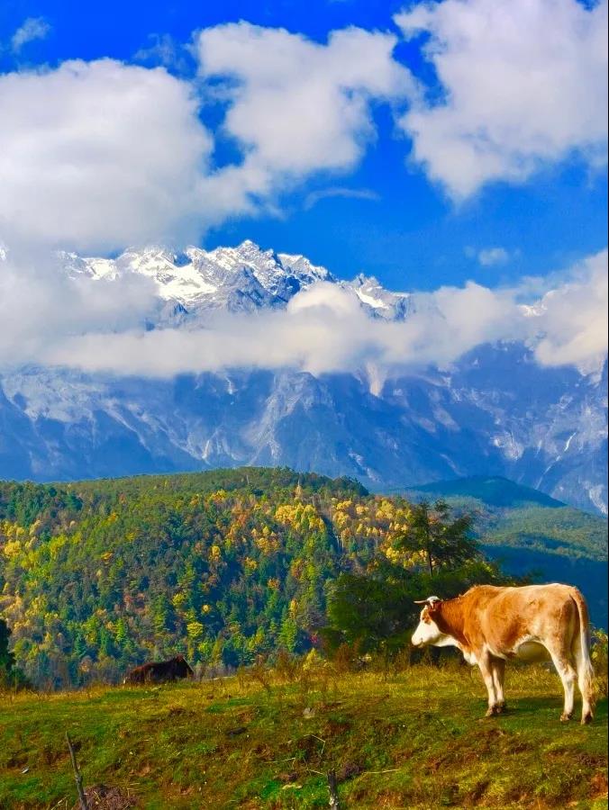 擁有完美的視角欣賞玉龍雪山,日照金山、日落映湖,這樣的美景在這里并不足為奇。