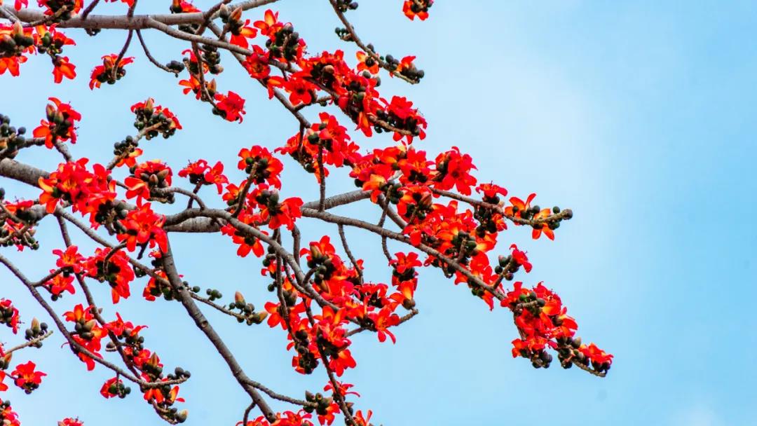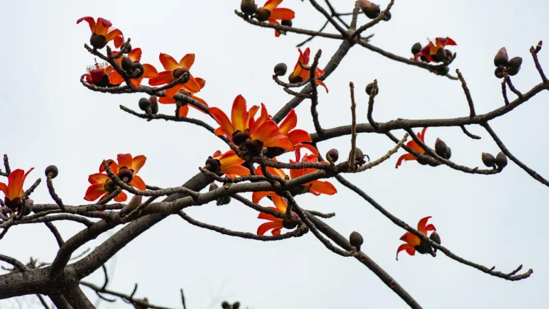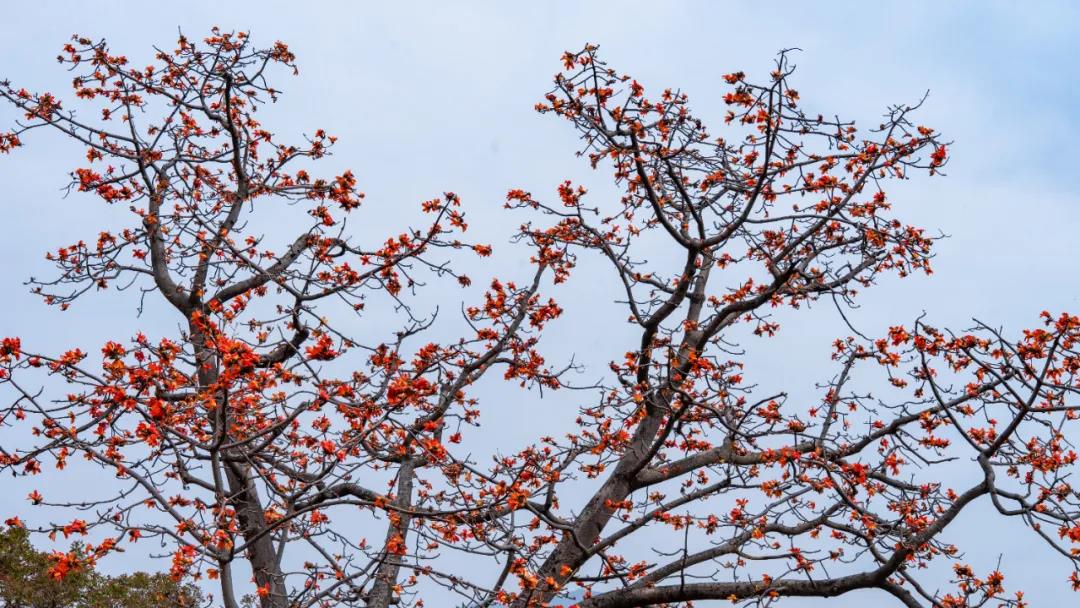 攀枝花樹冠高大,樹干上長有棱角,旱季葉子早已落光。自開春以來,一連串的花骨朵就開始綴滿枝頭,在春風來臨之前,悄然醞釀,蓄勢待發(fā)。