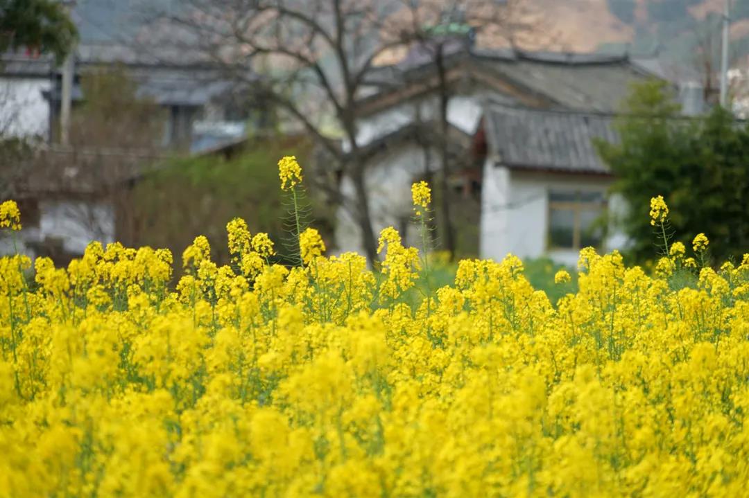 請(qǐng)?jiān)试S我沉醉在這片明媚的油菜花田,從迷迷蒙蒙的鵝黃煙霧中窺探靜謐安寧的村莊。