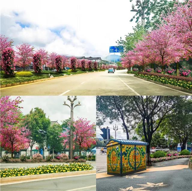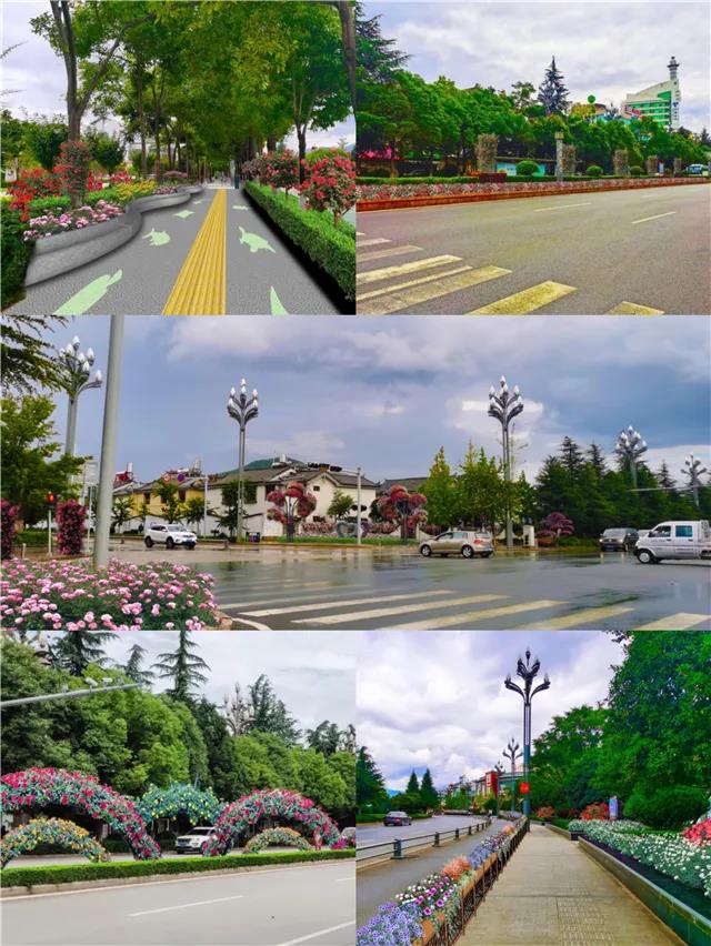 ?;勐纷鳛槌鞘械闹行母傻溃谄渚坝^設(shè)計(jì)中,拆除部分人流密集交會區(qū)域花池,以時(shí)令盆花為主,結(jié)合古城區(qū)高效花卉園等花卉產(chǎn)業(yè),在原有綠化帶中央安置立體花卉裝置,放置以紅粉為主色的時(shí)令花卉,形成以本土紅色花卉產(chǎn)業(yè)為主題的紅色花卉景觀大道,以“一街一景”配合“一縣一業(yè)”提升旅游城市品牌。