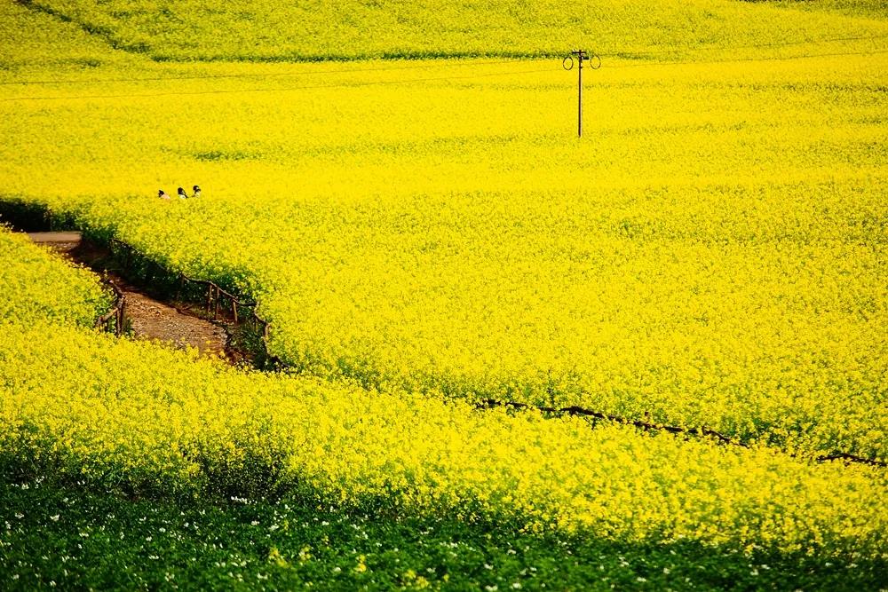 清明左右,自駕驅(qū)車(chē)來(lái)到在束河的西山游路,這時(shí)的油菜花已經(jīng)大片大片的盛開(kāi),如果你是我,就應(yīng)該放下手上的工作,去看看束河的油菜花海,站在田梗處,看一看這里的山山水水,似乎也似被穿上了一層金色的外衣,就連田野上的一抹翠綠,也成了這片花海的點(diǎn)綴。成了生機(jī)勃勃的宣傳詞,如青春一般,讓人不舍。